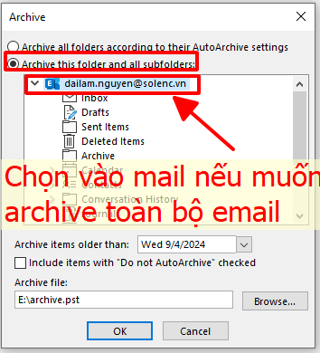 Hướng dẫn Archive toàn bộ email trong Outlook