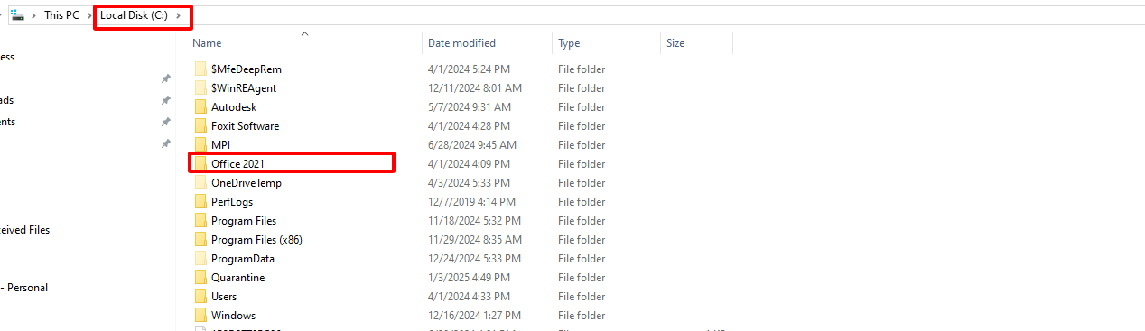 Copy folder Office 2021 qua ổ C