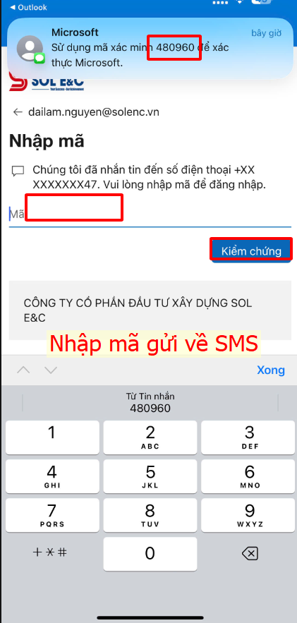 - Nhập mã xác minh gửi về tin nhắn SMS: